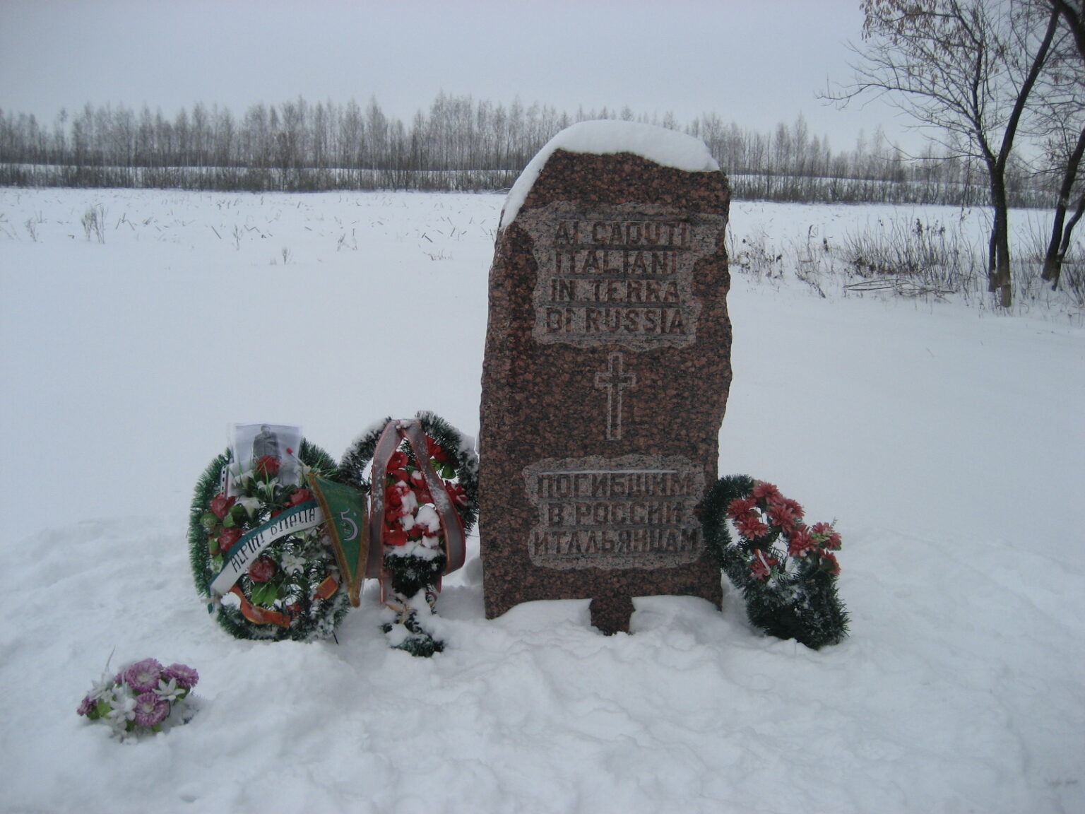 По сообщению портала Бел.ру, памятник итальянским солдатам около села Гарбузово Алексеевского городского округа установили родственники погибших в 1996 году. Он представлял собой гранитный камень, на лицевой стороне которого были выбиты латинский крест и две надписи на итальянском и русском языках. Итальянская надпись гласила: «Ai Caduti italiani in terra di Russia». Надпись на русском языке: «Погибшим в России итальянцам».