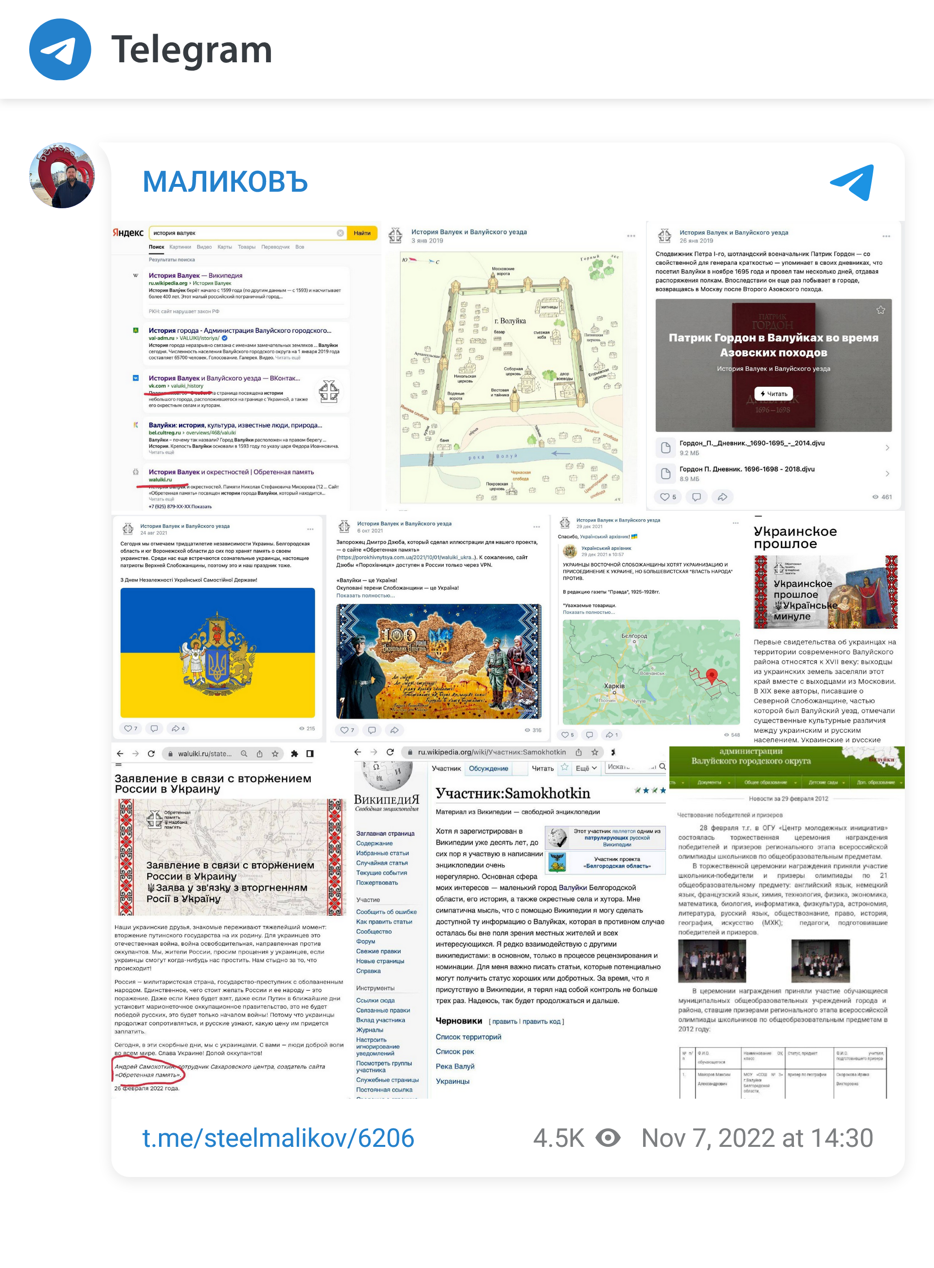 Уже не в первый раз наш сайт становится предметом интереса недалеких приспешников российской власти. Так, в ноябре 2022 года о нас писал «белгородский блогер» Андрей Маликов, который в 2003 году получил образование в Калининградском пограничном институте ФСБ России, а в 2013-2015 годы был депутатом Совета депутатов города Белгорода пятого созыва. Он охарактеризовал наш сайт как «откровенно антигосударственный ресурс», чем очень нам польстил.